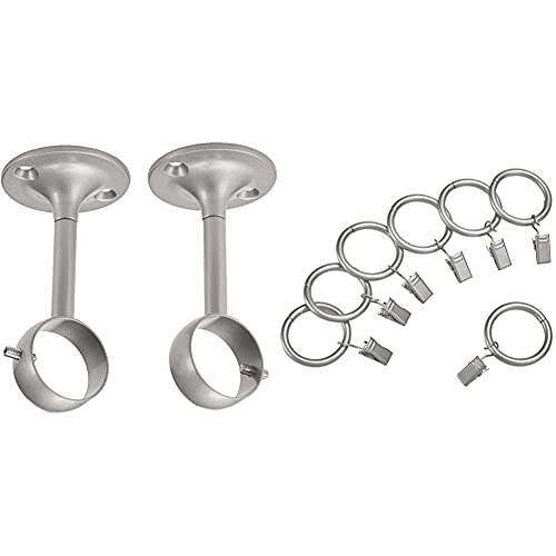 Amazon Basics - Staffa Da Soffitto, Set Da 2, Nichel & - Occhielli A Clip Per Tende, 2,54 Cm, Set Di 7, Nichel