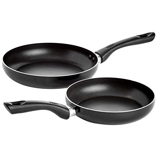 La batteria da cucina da 5 pezzi antiaderenti comprende una padella da 20cm x 4,2 cm, una padella da 24 cm x 4,5 cm, una pentola con coperchio da 16 cm x 8.3 cm, una pentola con coperchio da 18 cm x 9,3 cm e una casseruola con coperchio da 20 cm x 10,9 cm