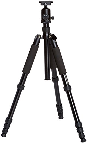 Questo leggerissimo treppiedi da viaggio, in alluminio, si estende fino a 161.3 cm;