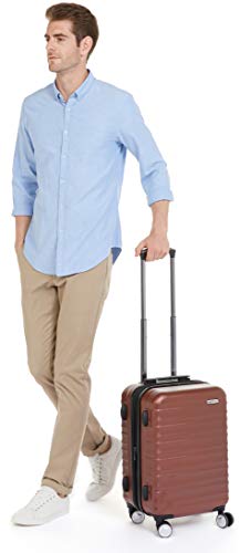 Amazon Basics - Trolley rigido Premium con rotelle pivotanti e lucchetto TSA integrato, bagaglio a mano 55 cm, Rosso
