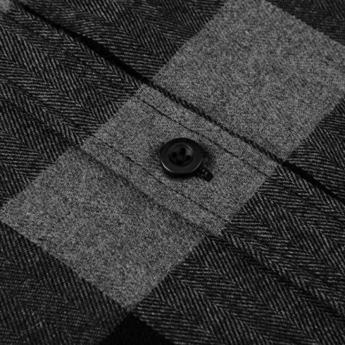 Amazon Brand - HIKARO Camicie di Flanella da Uomo a Manica Lunga Slim Fit Button Down Plaid Casual Shirt con Due Tasche-Grigio Nero-M