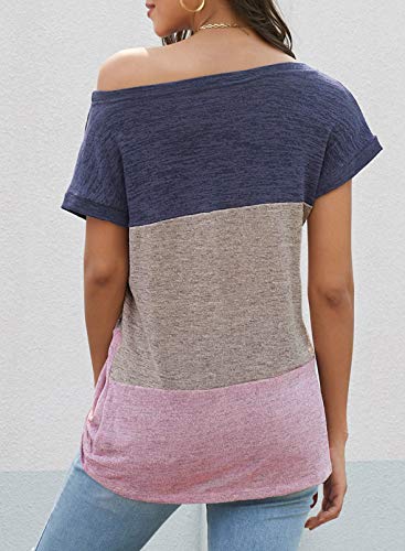 Design: t-shirt estiva da donna a maniche corte, girocollo, blocchi di colore, vestibilità ampia, design con nodo laterale sull'orlo. Una collezione di stili casual e alla moda.
