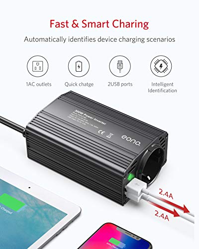 Amazon Brand - Eono 300W Inverter da Auto 12V a 220V con 2 Porte USB 2.4 A, Invertitore di Potenza per Carica Phone Pad Tablet Kindle-Onda Sinusoidale Modificata con Multi Protezioni, Accendisigari