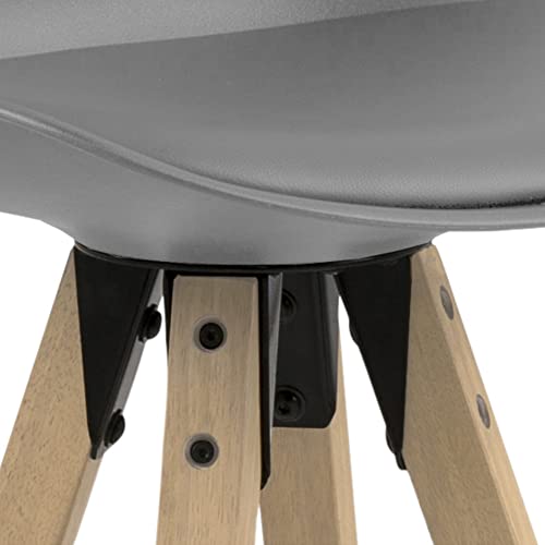 Materiali: plastica grigia, PU grigio, gambe in rubberwood oliato effetto quercia tinta, poggiapiedi in metallo nero