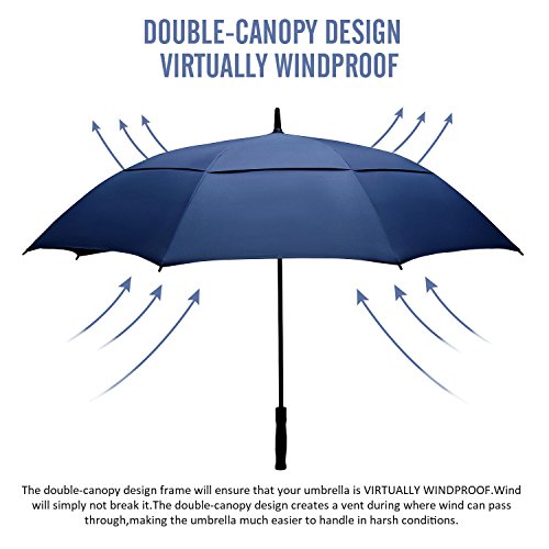 Professionale: l'ombrello da golf di Eono è usato da molti golfisti professionisti, che lo scelgono per la sua resistenza e utilità. L'ombrello da golf di Eono monta un doppio telo ventilato, ed è dotato di un comodo manico in gomma e un meccanismo di apertura automatica.