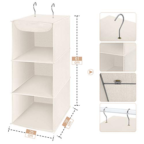 Amazon Brand - Umi Organizer Armadio con Ganci, 3 Ripiani Portatutto da Appendere per Armadio in Tessuto, Scomparti per Armadio per T-Shirt, Maglioni, Bagagli, Accessori, Organizzatore Pensile, Beige