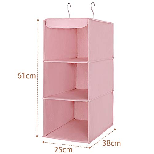 Amazon Brand - Umi Organizer Armadio con Ganci, 3 Ripiani Portatutto da Appendere per Armadio in Tessuto, Scomparti per Armadio per T-Shirt, Maglioni, Bagagli, Accessori, Organizzatore Pensile, Rosa