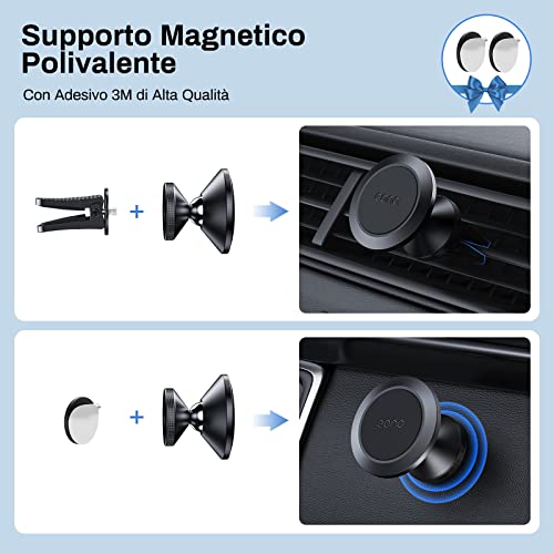 Amazon Brand - Eono Porta Cellulare Magnetico Auto - Universale Supporto Telefono Smartphone Calamita Portacellulare per iPhone 13 12 11 Pro Max Mini XR XS 8 7 6 SE, Samsung Galaxy, Xiaomi, Huawei LG
