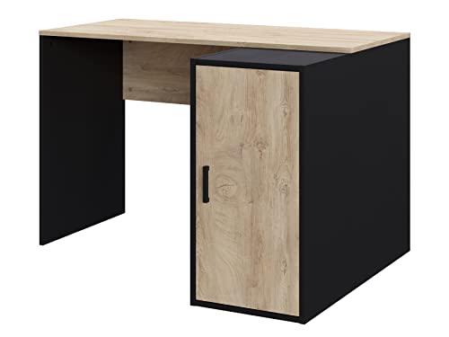 Melammina spessa nera con ripiano laminato rovere e maniglie in ABS (acrilonitrile-butadiene.stirene) nere
