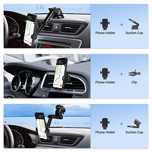 Supporto per Cellulare Universale 3 in 1: Il porta cellulare da auto di Eono può essere montato a piacimento su cruscotto, parabrezza e bocchette dell'aria. È adatto alla maggior parte delle auto, SUV, camion, taxi, ecc.