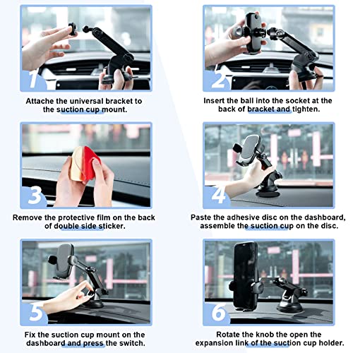 Ventosa ad Alta Tenuta: La ventosa del supporto cellulare auto ha una pellicola adesiva, che può essere fissata stabilmente in qualsiasi posizione sul cruscotto o sul parabrezza. Nota: la ventosa è altamente aderente e può lasciare residui, sconsigliamo l'uso su pelle, pareti o vetri con pellicole.