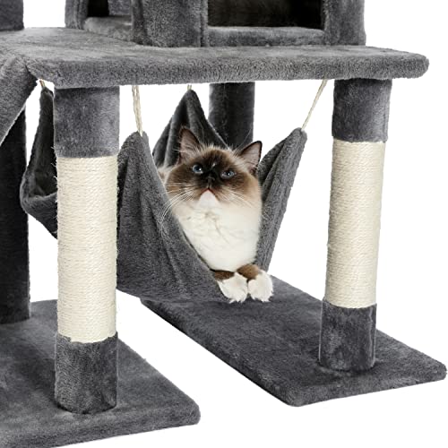 Amazon Brand - Umi Tiragraffi per gatti multifunzione da 105 cm tiragraffi per gatti con amaca da 35 cm in corda di sisal tronco giocattolo per gatti condominio grigio