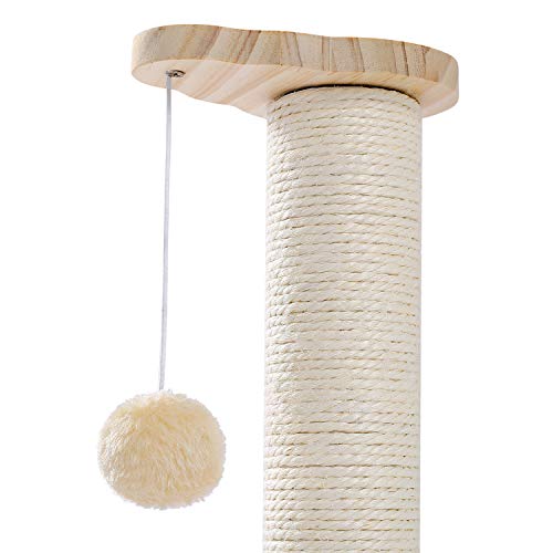 Amazon Brand - Umi Tiragraffi per Gatti Piccolo tiragraffi in Legno Squisito Tiragraffi in sisal con Palla penzoloni Palla Giocattolo interattiva Beige 45 cm