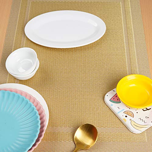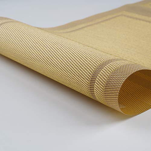 Dimensioni e Confezione: la confezione include 1 runner da tavola giallo dorato, la dimensione è 11,5 × 70 pollici (30 cm × 180 cm), adatto per l'uso quotidiano del tavolo per 4-6 persone.