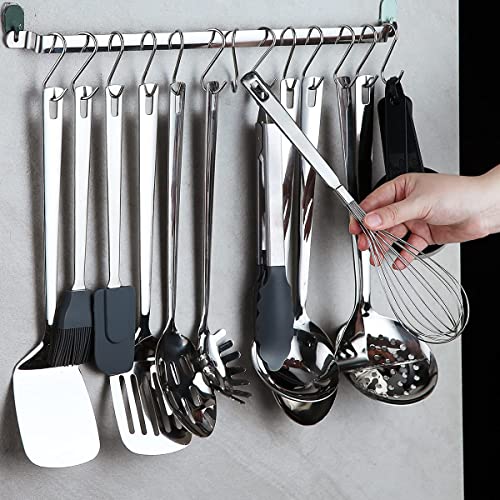 Amazon Brand - Eono Set di Utensili da Cucina in acciaio inossidabile 37 pezzi, Accessori da cucina con portautensili e gancio, resistente al calore e lavabile in lavastoviglie