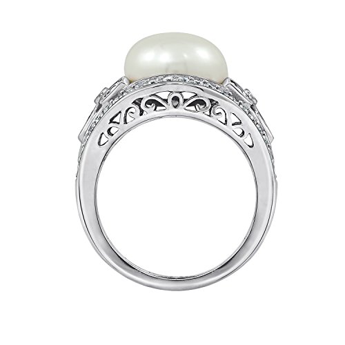Amazon Collection Anello da cocktail in argento Sterling placcato platino con zirconi cubici vintage con perle d'acqua dolce coltivate, misura 5