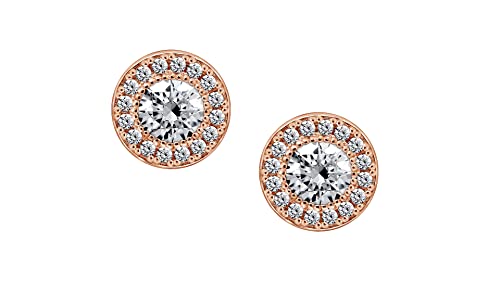 Amazon Collection Orecchini a lobo in argento sterling placcato oro rosa con zirconi infiniti a taglio rotondo (.48 cttw)