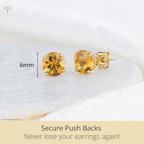 Amazon Collection Orecchini a perno rotondi in oro giallo 9 carati con pietra portafortuna di novembre (6 mm)