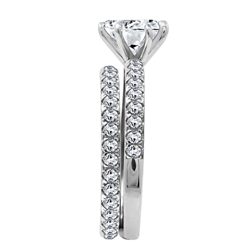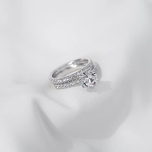 Set da matrimonio in due pezzi con anello di fidanzamento con zirconi cubici rotondi a taglio brillante e inserto a mezza lunghezza Zirconia e fede nuziale completa con pavé set di zirconi rotondi