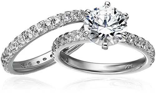 Amazon Collection Platinum-Plated Sterling Silver Round Ring Set made with Infinite Elements Cubic Zirconia (1 Carat Center Stone), Size 8