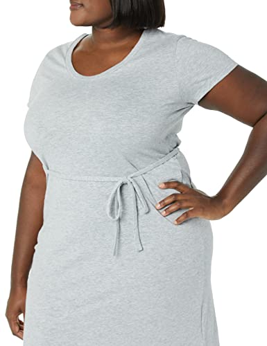 Amazon Essentials Abito a Maglietta Medio a Maniche Corte con Cintura Donna, Grigio Chiaro Puntinato, M
