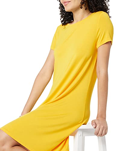 Amazon Essentials Abito Swing a Maniche Corte con Scollo Ampio (Taglie Forti Disponibili) Donna, Giallo, M