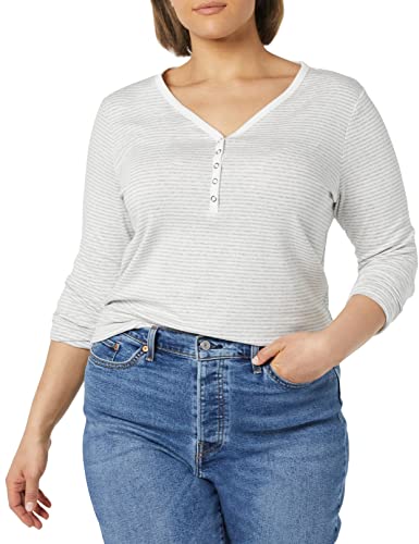 Amazon Essentials Camicia Henley Aderente Premaman E per Allattamento Donna, Bianco/Grigio Puntinato, Mini Righe, M