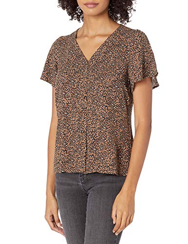 Amazon Essentials Camicia a Maniche Corte con Bottoni Rivestiti in Twill Fluido (in precedenza Goodthreads) Donna, Stampa Animalier, L