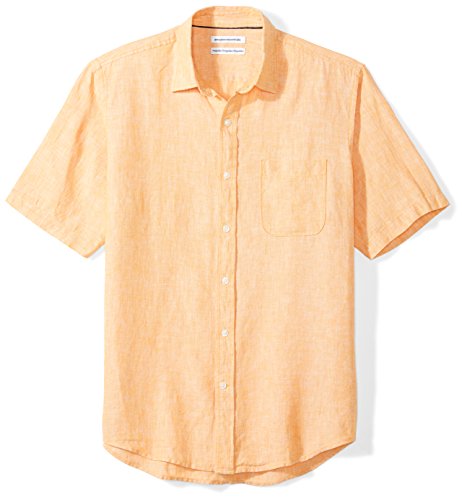 Amazon Essentials Camicia in Lino a Maniche Corte Regular Fit Uomo, Arancione, XS