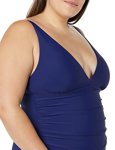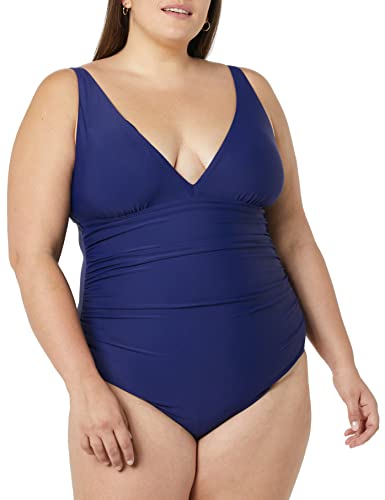 Amazon Essentials Costume da Bagno Contenitivo con Scollo Profondo Donna, Blu Marino, 48