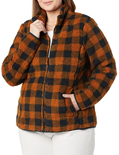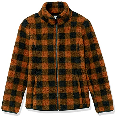 Amazon Essentials Giacca con Cerniera Integrale in Pile Foderata in Sherpa Donna, Marrone Buffalo Plaid, S