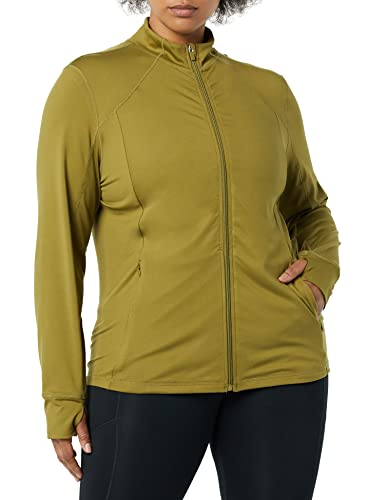 Amazon Essentials Giacca con Zip a Tutta Lunghezza Elasticizzata Tecnica Spazzolata (Taglie Forti Disponibili) Donna, Verde Oliva Chiaro, XS