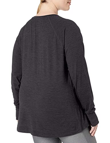 Amazon Essentials Maglia Girocollo a Maniche Lunghe Elasticizzata Tecnica Spazzolata (Taglie Forti Disponibili) Donna, Nero/Tintura Policromatica, XXL Plus