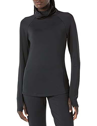 Amazon Essentials Maglietta Tecnica da Corsa a Maniche Lunghe con Collo Alto Donna, Nero, M