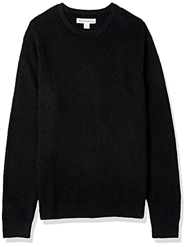 Amazon Essentials Maglione Morbido Girocollo a Maniche Lunghe in Punto Waffle Uomo, Nero, XXL