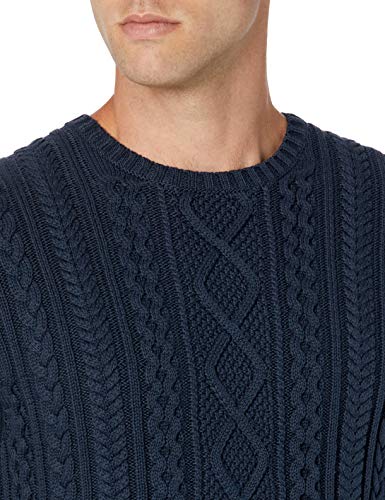 Amazon Essentials Maglione da Pescatore Girocollo a Coste a Manica Lunga in Cotone 100% Uomo, Blu Marino, XL