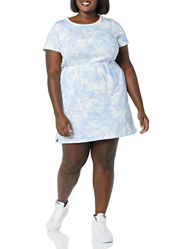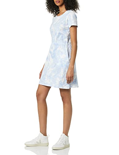 Amazon Essentials Miniabito a Maniche Corte in Jersey di Cotone con Elastico in Vita Donna, Blu Tie & Dye, XL
