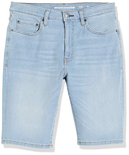 Amazon Essentials Pantaloncini in denim con cuciture interne taglio dritto interno gamba 28 cm Uomo, Delavé Ultra Chiaro, 42W