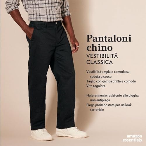 Amazon Essentials Pantaloni Chino Classici Piatti sul Davanti e Resistenti alle Pieghe (Disponibili nelle Taglie Big & Tall) Uomo, Indaco, 34W / 28L
