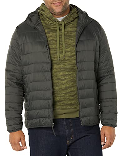 Amazon Essentials Piumino Leggero con Cappuccio Impermeabile e Ripiegabile Uomo, Grigio Scuro, XS