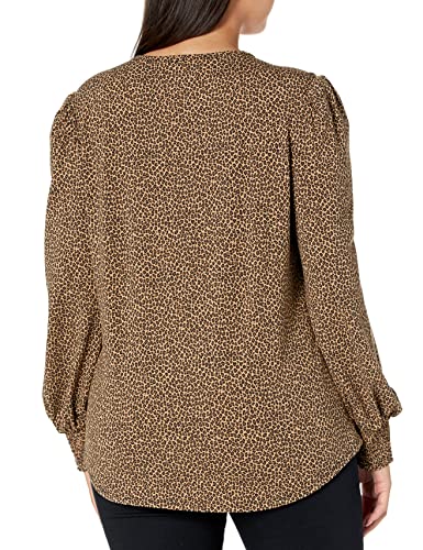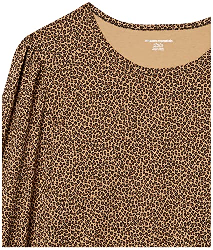 Amazon Essentials T-Shirt Girocollo a Manica Lunga con Polsini Punto Smock Donna, Cammello Maculata, M