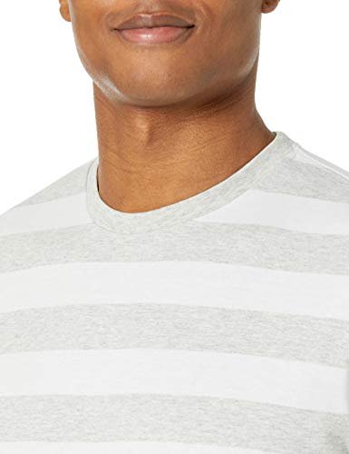 Amazon Essentials T-Shirt Girocollo a Maniche Corte Slim Uomo, Pacco da 2, Grigio Chiaro Puntinato/Bianco Righe da Rugby, S