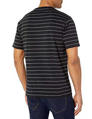 Amazon Essentials T-Shirt Girocollo a Maniche Corte Slim Uomo, Pacco da 2, Nero Righe/Carbone Puntinato, XS