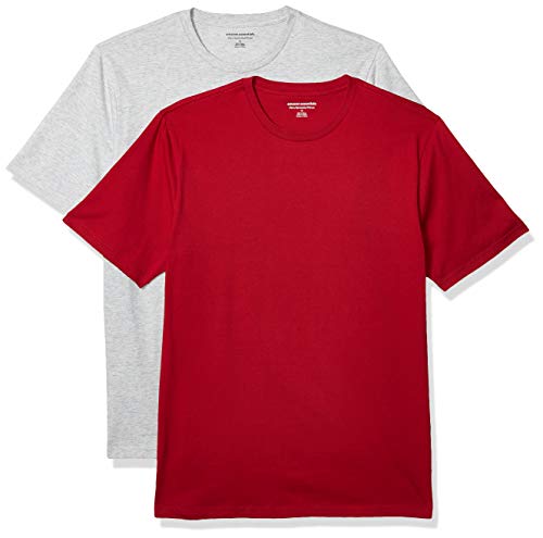 Amazon Essentials T-Shirt Girocollo a Maniche Corte Slim Uomo, Pacco da 2, Rosso/Grigio Chiaro Puntinato, XS