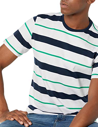 Amazon Essentials T-Shirt Girocollo a Maniche Corte Slim Uomo, Pacco da 2, Verde Righe/Blu Marino, S