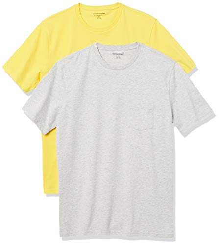 Amazon Essentials T-Shirt Girocollo con Tasca a Maniche Corte Slim Uomo, Pacco da 2, Giallo/Grigio Chiaro Puntinato, XS