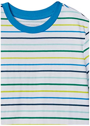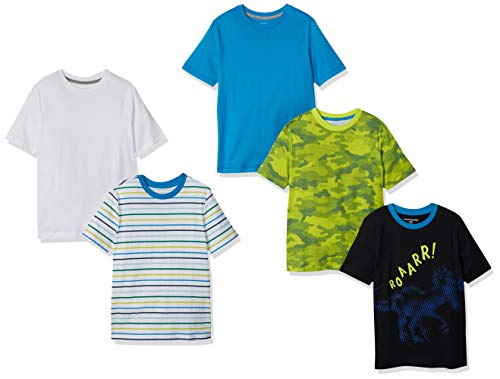 Amazon Essentials T-Shirt a Maniche Corte Bambini e Ragazzi, Pacco da 5, Bianco/Blu/Fluorescente Mimetica/Nero Dinosauri/Righe, 2 Anni