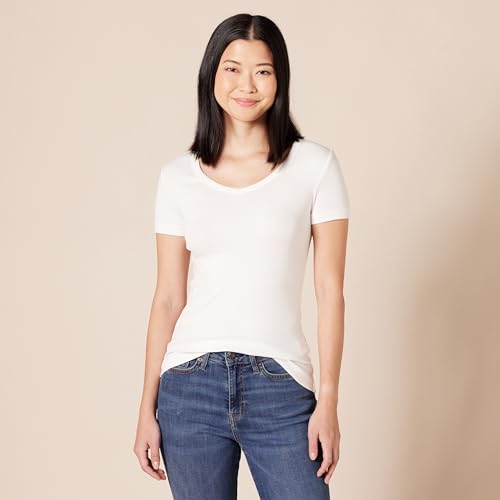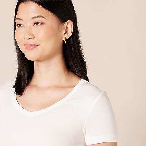 Amazon Essentials T-Shirt con Scollo a v a Maniche Corte Slim Donna, Pacco da 2, Bianco, M