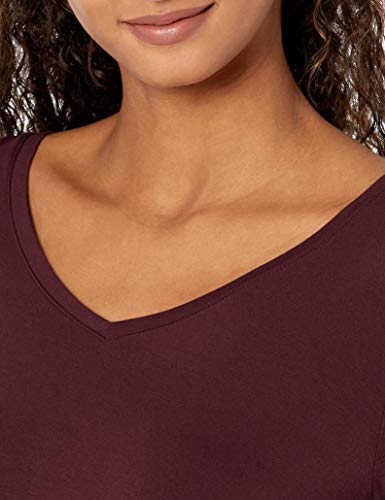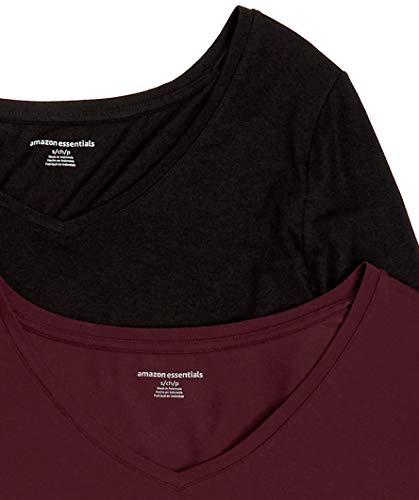 Amazon Essentials T-Shirt Swing con Maniche a 3/4 e Scollo a v (Taglie Forti Disponibili) Donna, Pacco da 2, Nero/Bordeaux, XL Plus