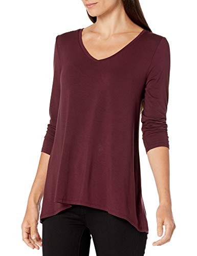 Amazon Essentials T-Shirt Swing con Maniche a 3/4 e Scollo a v (Taglie Forti Disponibili) Donna, Pacco da 2, Bordeaux/Verde Oliva, XS